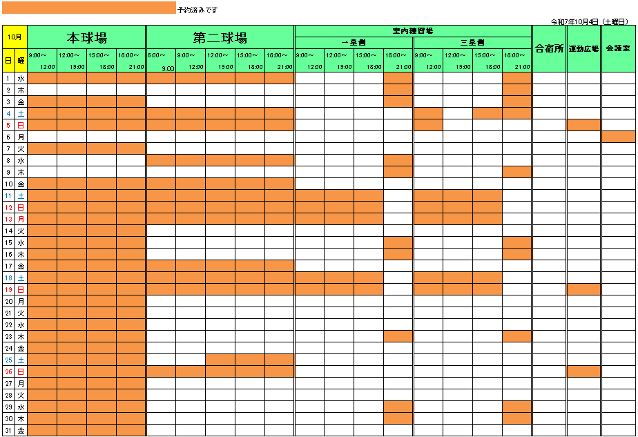 日頃より中山公園をご利用頂きありがとうございます。10月の予約状況をお知らせいたします。