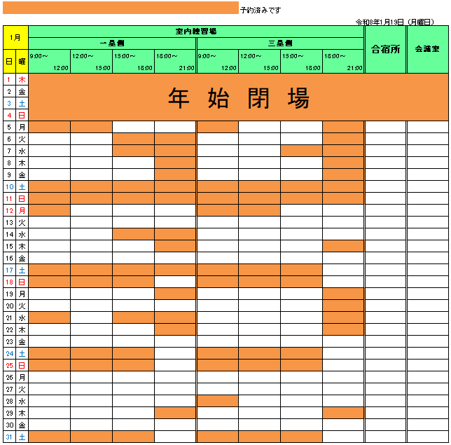 日頃より中山公園をご利用頂きありがとうございます。1月の予約状況をお知らせいたします。