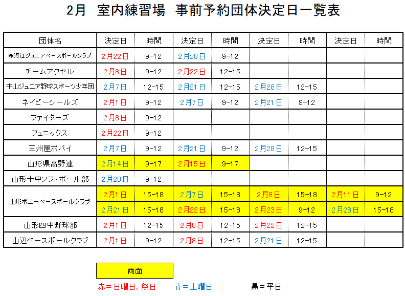 日頃より中山公園をご利用頂きありがとうございます。2月の予約状況をお知らせいたします。